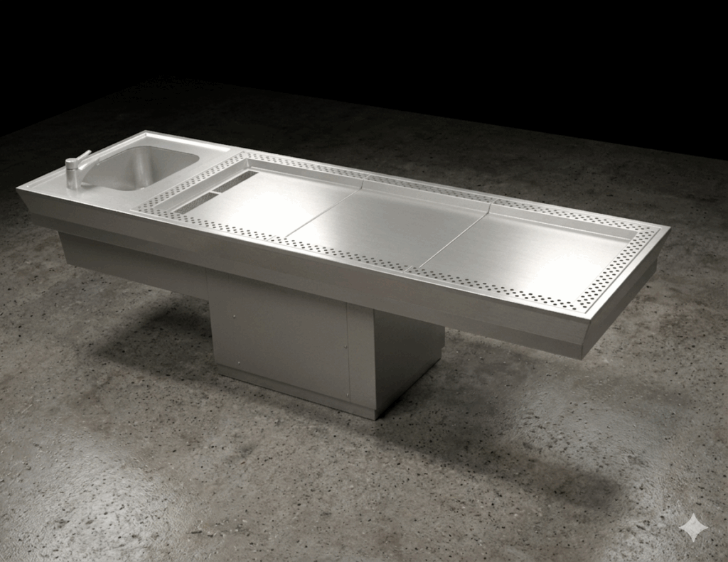 Der Seziertisch wurde von uns entwickelt und ist für diverse Bereiche aus der Medizintechnik geeignet.
